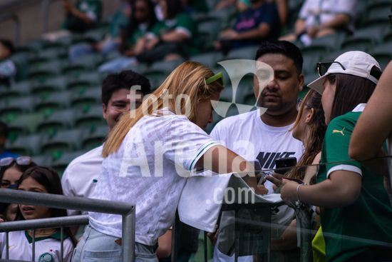 2909924 Fe Palermo (Palmeiras) distribuindo autografos aos torcedores antes da partida entre Palmeiras X Vitória-BA, válida pela quarta rodada do Campeonato Brasileiro Feminino Série A1 2026, nessa manhã (11h) de domingo (22), no Allianz Parque, SP.