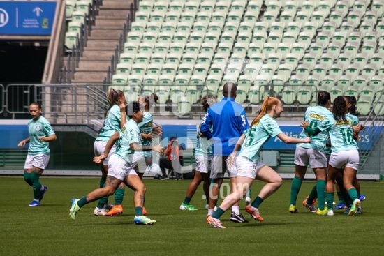 2909927 Palmeiras em aquecimento antes da partida entre Palmeiras X Vitória-BA, válida pela quarta rodada do Campeonato Brasileiro Feminino Série A1 2026, nessa manhã (11h) de domingo (22), no Allianz Parque, SP.