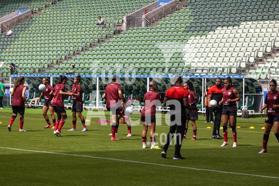 2909929 Vitória em aquecimento antes da partida entre Palmeiras X Vitória-BA, válida pela quarta rodada do Campeonato Brasileiro Feminino Série A1 2026, nessa manhã (11h) de domingo (22), no Allianz Parque, SP.