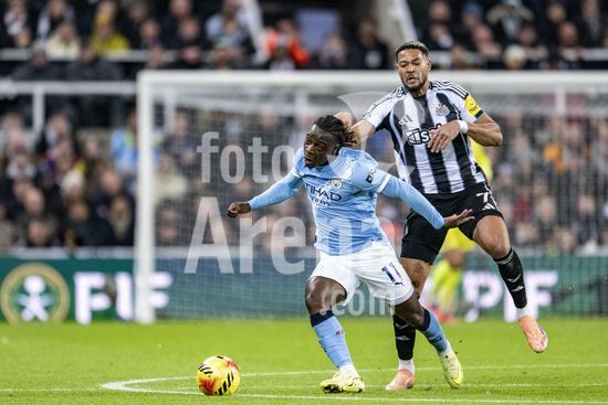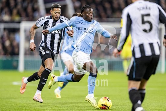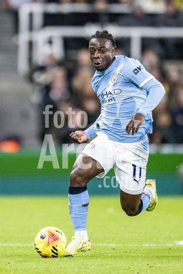 2846903 NEWCASTLE UPON TYNE, INGLATERRA - 22 DE NOVEMBRO: Jeremy Doku, do Manchester City, corre com a bola durante a partida da Premier League entre Newcastle United e Manchester City no St James Park, em 22 de novembro de 2025, em Newcastle, Inglaterra. (Richard Callis/Fotoarena)