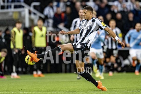 2846912 NEWCASTLE UPON TYNE, INGLATERRA - 22 DE NOVEMBRO: Jeremy Doku, do Manchester City, chuta durante a partida da Premier League entre Newcastle United e Manchester City no St James Park, em 22 de novembro de 2025, em Newcastle, Inglaterra. (Richard Callis/Fotoarena)