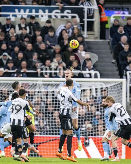 2846905 NEWCASTLE UPON TYNE, INGLATERRA, 22 DE NOVEMBRO: Erling Haaland, do Manchester City, cabeceia a bola durante a partida da Premier League entre Newcastle United e Manchester City no St James Park, em 22 de novembro de 2025, em Newcastle, Inglaterra. (Richard Callis/Fotoarena)