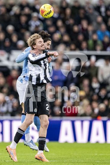 2846901 NEWCASTLE UPON TYNE, INGLATERRA - 22 DE NOVEMBRO: Nico Gonzalez, do Manchester City, cabeceia a bola durante a partida da Premier League entre Newcastle United e Manchester City no St James Park, em 22 de novembro de 2025, em Newcastle, Inglaterra. (Richard Callis/Fotoarena)