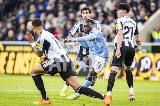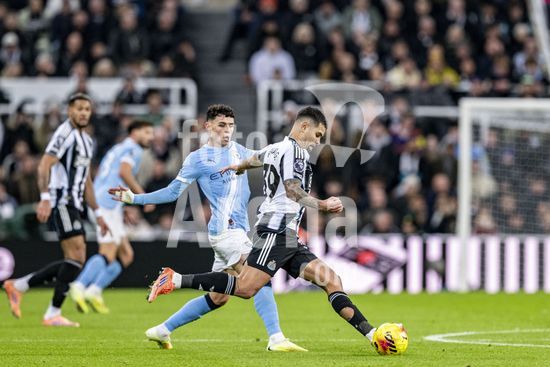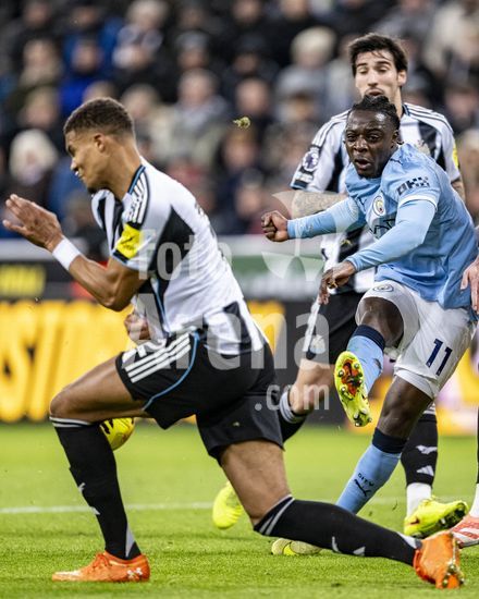 2846909 NEWCASTLE UPON TYNE, INGLATERRA - 22 DE NOVEMBRO: Jeremy Doku, do Manchester City, chuta durante a partida da Premier League entre Newcastle United e Manchester City no St James Park, em 22 de novembro de 2025, em Newcastle, Inglaterra. (Richard Callis/Fotoarena)