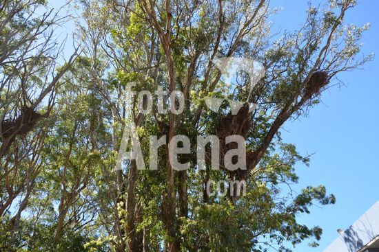 2881236 Imagens de ninhos de maritacas; instalados em árvores de eucalipto, no canteiro central da Avenida Rio Grande, na Praia do Cassino, em Rio Grande. Rio Grande, RS (07).