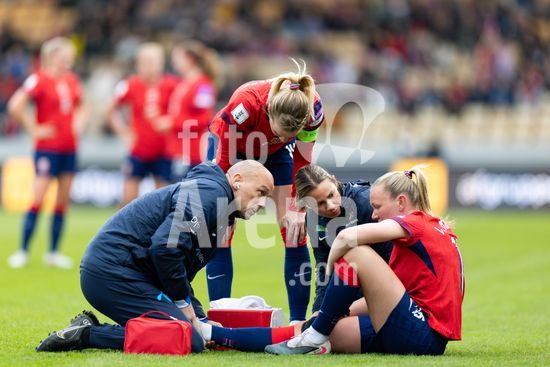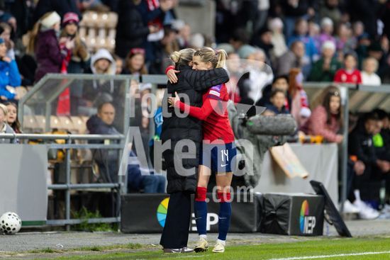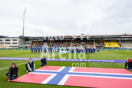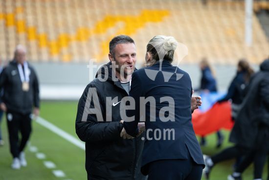 LILLESTROM, NORUEGA - 14 DE ABRIL: O tecnico da Eslovenia, Sasa Kolman, e a tecnica da Noruega, Gemma Grainger, sao vistos antes da partida das Eliminatorias para a Copa do Mundo Feminina da FIFA de 2027 entre Noruega e Eslovenia, no Estadio Arasen, em 14 de abril de 2026, em Lillestrom, Noruega. (Ane Frosaker/SPP)