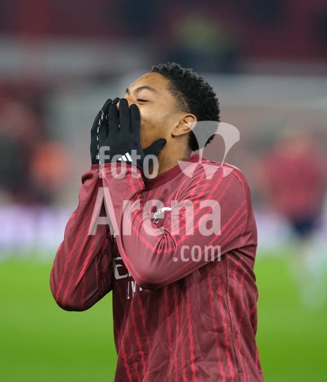 2869290 Myles Lewis Skelly, do Arsenal, durante o aquecimento pre-jogo na partida de futebol da Premier League entre Nottingham Forest e Arsenal, no City Ground, em Nottingham. (Paul Bonser/Sports Press Photo / SPP)
