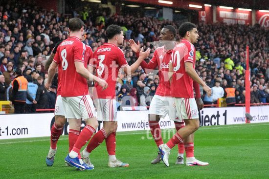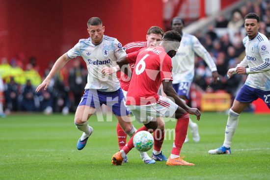 NOTTINGHAM, INGLATERRA - 12 DE ABRIL: Igor Jesus, do Nottingham Forest, e Morgan Rogers, do Aston Villa, em acao durante a partida de futebol da Premier League entre Nottingham Forest e Aston Villa no City Ground, em 12 de abril de 2026, em Nottingham, Inglaterra. (Paul Bonser / Sports Press Photo / SPP)