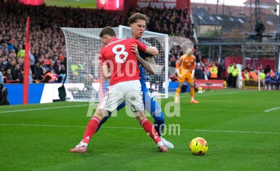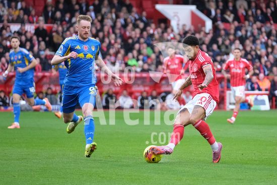 2839292 Omari Hutchinson, do Nottingham Forest, durante a partida da Premier League entre Nottingham Forest e Leeds United no City Ground, em Nottingham. Placar final: 3 a 1. (Paul Bonser/Sports Press Photo / SPP)