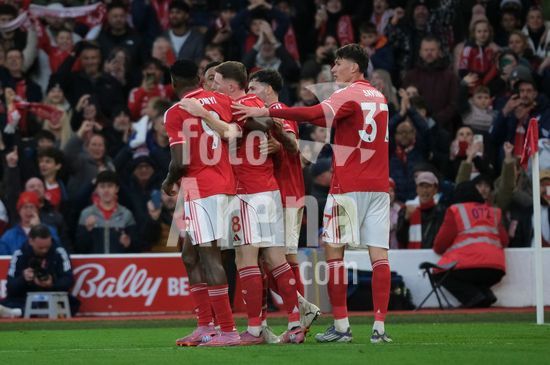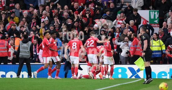 2839270 Morgan Gibbs-White, do Nottingham Forest, comemora seu gol aos 68 minutos, que garantiu o placar de 2 a 1 para o Nottingham Forest e o Leeds United, durante a partida da Premier League disputada no City Ground, em Nottingham. (Paul Bonser/Sports Press Photo / SPP)