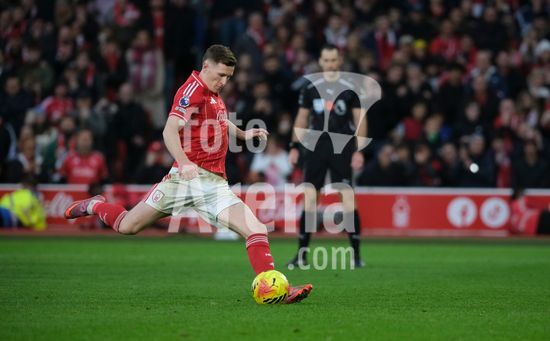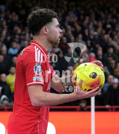 2839261 Neco Williams, do Nottingham Forest, cobra um escanteio durante a partida da Premier League entre Nottingham Forest e Leeds United, no City Ground, em Nottingham. (Paul Bonser/Sports Press Photo / SPP)