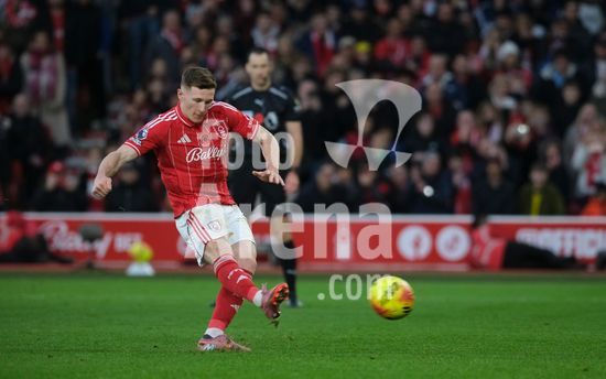2839290 Elliot Anderson, do Nottingham Forest, converte a cobranca de penalti aos 90+1 minutos durante a partida da Premier League entre Nottingham Forest e Leeds United, no City Ground, em Nottingham. Placar final: 3 a 1. (Paul Bonser/Sports Press Photo / SPP)