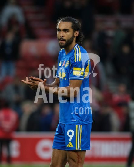 2839285 Dominic Calvert-Lewin, do Leeds United, aplaude os torcedores visitantes apos o apito final durante a partida da Premier League entre Nottingham Forest e Leeds United, no City Ground, em Nottingham. Placar final: 3 a 1. (Paul Bonser/Sports Press Photo / SPP)