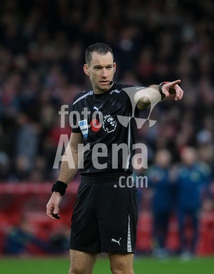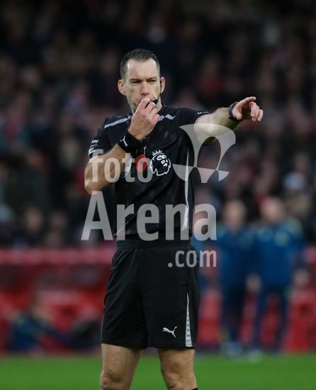 2839299 O arbitro Jarred Gillett durante a partida de futebol da Premier League entre Nottingham Forest e Leeds United no City Ground, em Nottingham. Placar final: 3 a 1. (Paul Bonser/Sports Press Photo / SPP)