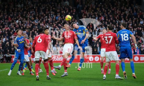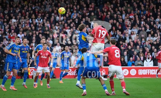2839312 Nikola Milenkovic, do Nottingham Forest, durante a partida da Premier League entre Nottingham Forest e Leeds United no City Ground, em Nottingham. Placar final: 3 a 1. (Paul Bonser/Sports Press Photo / SPP)