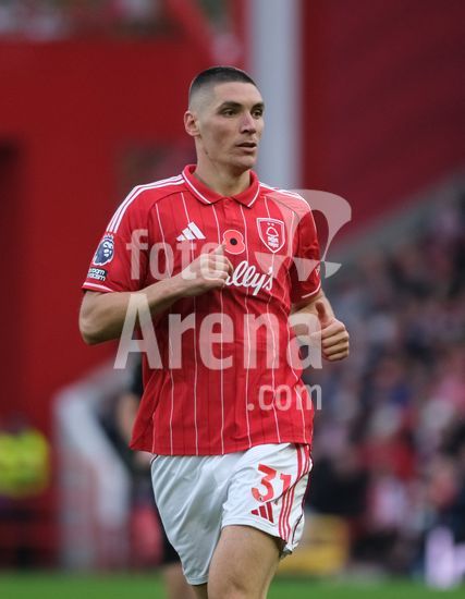 2839280 Nikola Milenkovic, do Nottingham Forest, durante a partida da Premier League entre Nottingham Forest e Leeds United no City Ground, em Nottingham. Placar final: 3 a 1. (Paul Bonser/Sports Press Photo / SPP)