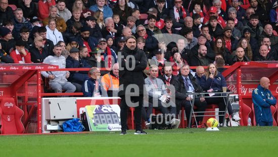 2839313 O treinador do Leeds United, Daniel Farke, durante a partida da Premier League entre Nottingham Forest e Leeds United no City Ground, em Nottingham. Placar final: 3 a 1. (Paul Bonser/Sports Press Photo / SPP)