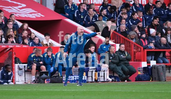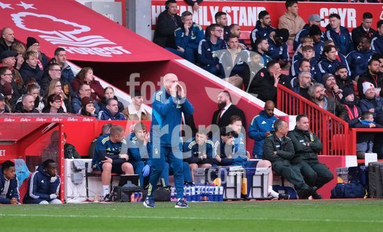 2839326 O treinador do Nottingham Forest, Sean Dyche, da instrucoes a sua equipe durante a partida da Premier League entre Nottingham Forest e Leeds United no City Ground, em Nottingham. Placar final: 3 a 1. (Paul Bonser/Sports Press Photo / SPP)