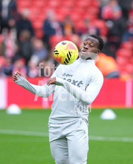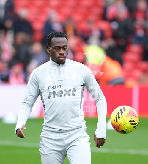 2839489 Arnaud Kalimuendo, do Nottingham Forest, durante o aquecimento pre-jogo na partida da Premier League entre Nottingham Forest e Leeds United, no City Ground, em Nottingham. Placar final: 3 a 1. (Paul Bonser/Sports Press Photo / SPP)