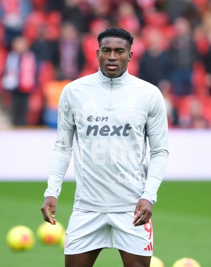 2839478 Arnaud Kalimuendo, do Nottingham Forest, durante o aquecimento pre-jogo na partida da Premier League entre Nottingham Forest e Leeds United, no City Ground, em Nottingham. Placar final: 3 a 1. (Paul Bonser/Sports Press Photo / SPP)