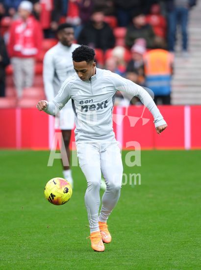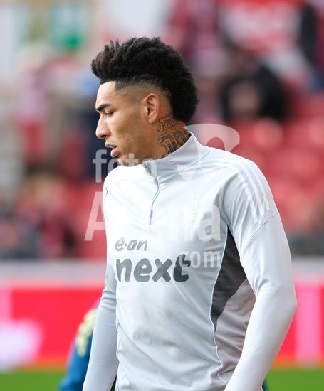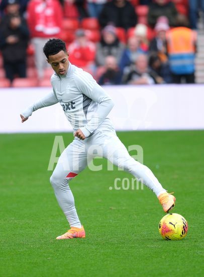 2839486 Omari Hutchinson, do Nottingham Forest, durante o aquecimento pre-jogo na partida da Premier League entre Nottingham Forest e Leeds United, no City Ground, em Nottingham. Placar final: 3 a 1. (Paul Bonser/Sports Press Photo / SPP)