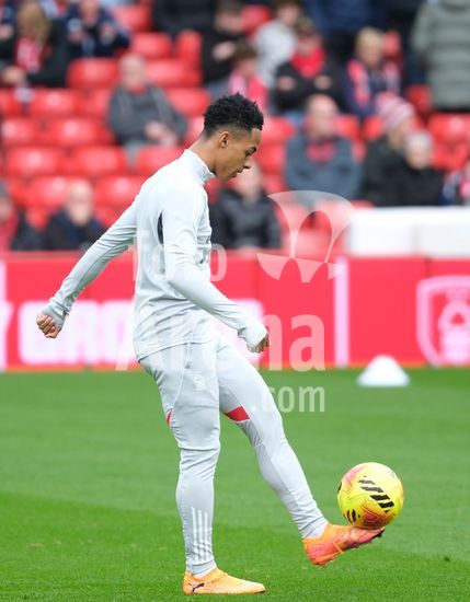 2839493 Neco Williams, do Nottingham Forest, durante o aquecimento pre-jogo na partida da Premier League entre Nottingham Forest e Leeds United, no City Ground, em Nottingham. Placar final: 3 a 1. (Paul Bonser/Sports Press Photo / SPP)