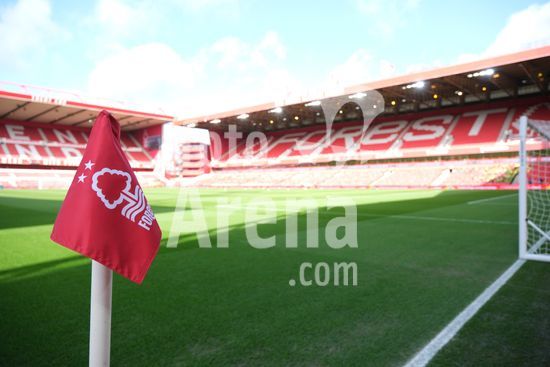 2893027 Bandeira de escanteio do Nottingham Forest antes do pontape inicial durante a partida de futebol da Premier League entre Nottingham Forest e Liverpool FC no City Ground em Nottingham. (Paul Bonser/Sports Press Photo / SPP)