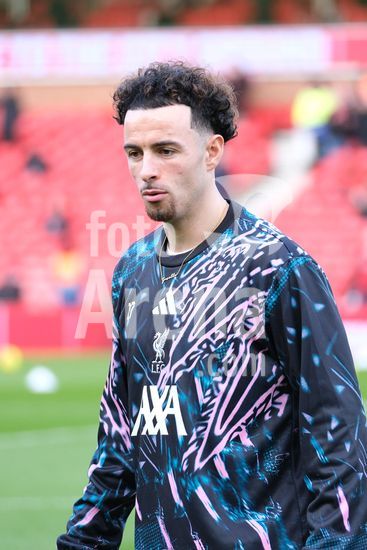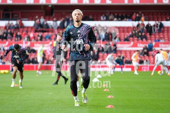 2893028 Curtis Jones, do Liverpool FC, durante o aquecimento pre-jogo na partida de futebol da Premier League entre Nottingham Forest e Liverpool FC, no City Ground, em Nottingham. (Paul Bonser/Sports Press Photo / SPP)