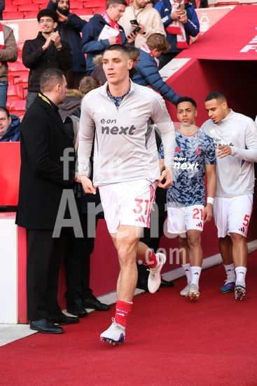 2893035 Nikola Milenkovic, do Nottingham Forest, durante o aquecimento pre-jogo na partida de futebol da Premier League entre Nottingham Forest e Liverpool FC, no City Ground, em Nottingham. (Paul Bonser/Sports Press Photo / SPP)