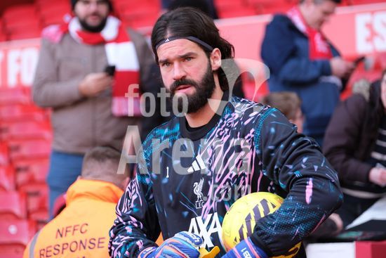 2893038 Alisson Becker, do Liverpool FC, durante o aquecimento pre-jogo na partida da Premier League entre Nottingham Forest e Liverpool FC, no City Ground, em Nottingham. (Paul Bonser/Sports Press Photo / SPP)