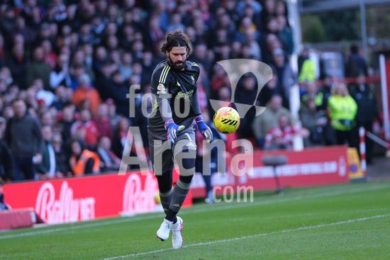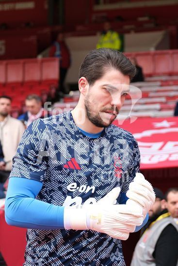 2893048 Stefan Ortega, do Nottingham Forest, durante o aquecimento pre-jogo na partida de futebol da Premier League entre Nottingham Forest e Liverpool FC, no City Ground, em Nottingham. (Paul Bonser/Sports Press Photo / SPP)