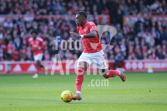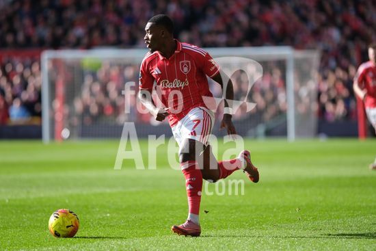 2893101 Callum Hudson Odoi, do Nottingham Forest, com a bola durante a partida de futebol da Premier League entre Nottingham Forest e Liverpool FC no City Ground, em Nottingham. (Paul Bonser/Sports Press Photo / SPP)