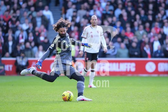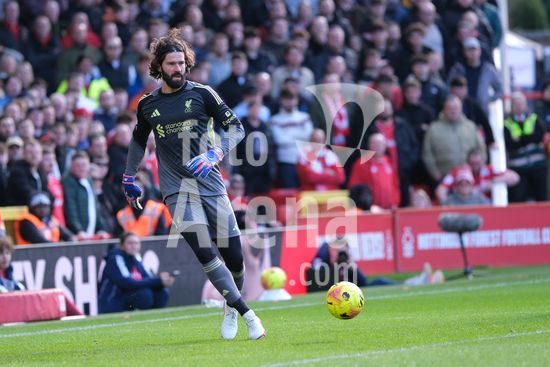 2893107 Alisson Becker, do Liverpool FC, com a bola durante a partida de futebol da Premier League entre Nottingham Forest e Liverpool FC no City Ground, em Nottingham. (Paul Bonser/Sports Press Photo / SPP)