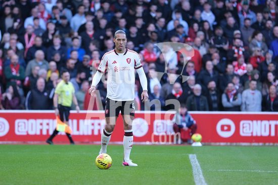2893105 Virgil Van Dijk, do Liverpool FC, com a bola durante a partida de futebol da Premier League entre Nottingham Forest e Liverpool FC no City Ground, em Nottingham. (Paul Bonser/Sports Press Photo / SPP)