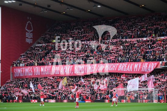 2893140 A arquibancada Trent End exibia uma faixa antes do inicio da partida de futebol da Premier League entre Nottingham Forest e Liverpool FC no City Ground, em Nottingham. (Paul Bonser/Sports Press Photo / SPP)
