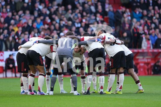 2893141 Jogadores do Liverpool FC se reunem antes do inicio da partida do Campeonato Ingles entre Nottingham Forest e Liverpool FC, no City Ground, em Nottingham. (Paul Bonser/Sports Press Photo / SPP)