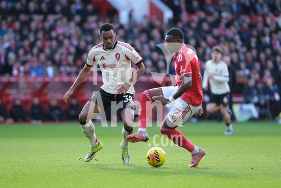 2893050 Murillo, do Nottingham Forest, em acao durante a partida de futebol da Premier League entre Nottingham Forest e Liverpool FC no City Ground, em Nottingham. (Paul Bonser/Sports Press Photo / SPP)