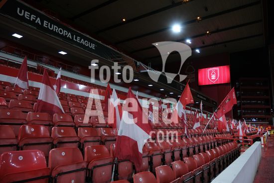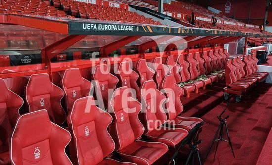2849482 Banco de reservas da equipe da casa antes do pontape inicial durante a partida de futebol da Liga Europa da UEFA entre Nottingham Forest e Malmo FF no City Ground em Nottingham. (Paul Bonser/Sports Press Photo / SPP)