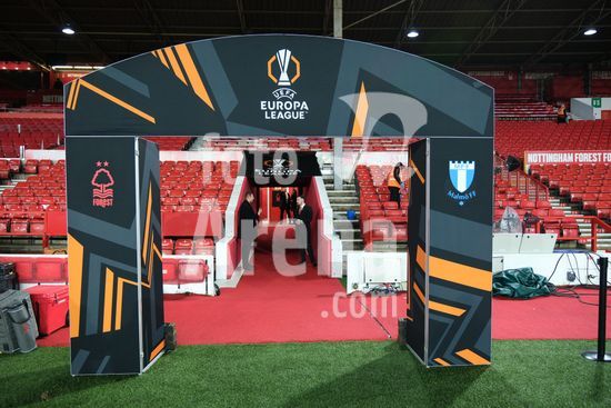 2849481 O arco de entrada da Liga Europa antes do pontape inicial durante o jogo de futebol da Liga Europa da UEFA entre Nottingham Forest e Malmo FF no City Ground em Nottingham. (Paul Bonser/Sports Press Photo / SPP)