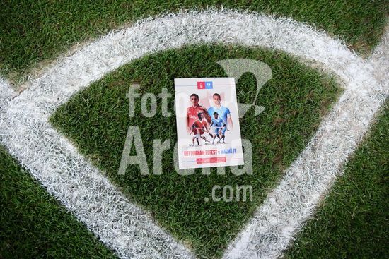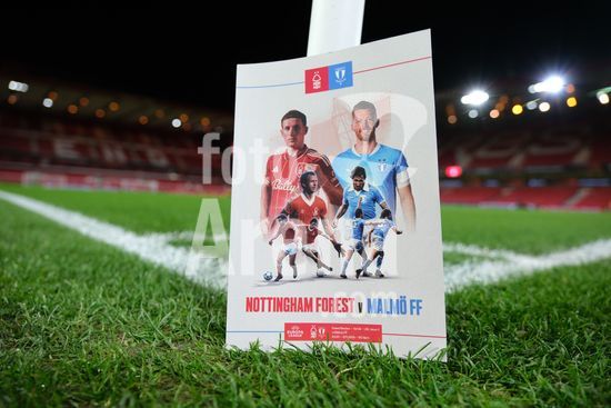 2849485 Programa do jogo exibido no gramado antes do pontape inicial durante a partida de futebol da Liga Europa da UEFA entre Nottingham Forest e Malmo FF no City Ground em Nottingham. (Paul Bonser/Sports Press Photo / SPP)