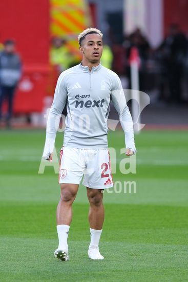 2926203 NOTTINGHAM, INGLATERRA - 16 DE ABRIL: Omari Hutchinson, do Nottingham Forest, durante o aquecimento pre-jogo da partida de futebol das quartas de final da Liga Europa da UEFA entre Nottingham Forest e FC Porto, no City Ground, em 16 de abril de 2026, em Nottingham, Inglaterra. (Paul Bonser / Sports Press Photo / SPP)