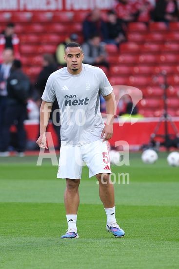 2926204 NOTTINGHAM, INGLATERRA - 16 DE ABRIL: Murillo, do Nottingham Forest, durante o aquecimento pre-jogo da partida de futebol das quartas de final da Liga Europa da UEFA entre Nottingham Forest e FC Porto, no City Ground, em 16 de abril de 2026, em Nottingham, Inglaterra. (Paul Bonser / Sports Press Photo / SPP)