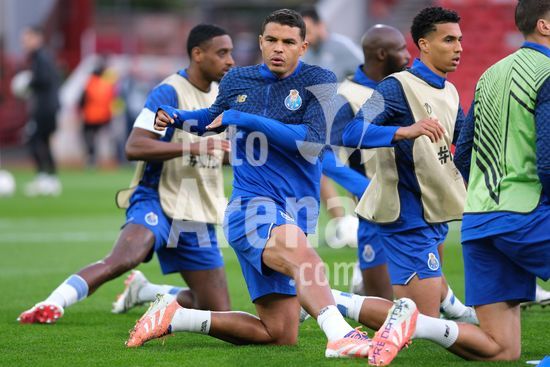 2926199 NOTTINGHAM, INGLATERRA - 16 DE ABRIL: Thiago Silva, do FC Porto, durante o aquecimento pre-jogo da partida de futebol das quartas de final da Liga Europa da UEFA entre Nottingham Forest e FC Porto, no City Ground, em 16 de abril de 2026, em Nottingham, Inglaterra. (Paul Bonser / Sports Press Photo / SPP)