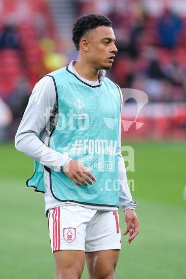 2926224 NOTTINGHAM, INGLATERRA - 16 DE ABRIL: Dan Ndoye, do Nottingham Forest, durante o aquecimento pre-jogo da partida de futebol das quartas de final da Liga Europa da UEFA entre Nottingham Forest e FC Porto, no City Ground, em 16 de abril de 2026, em Nottingham, Inglaterra. (Paul Bonser / Sports Press Photo / SPP)
