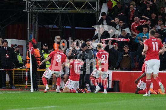 2926334 NOTTINGHAM, INGLATERRA - 16 DE ABRIL: Telao anuncia o primeiro gol do Forest durante uma partida da Liga Europa da UEFA entre Nottingham Forest e Porto no City Ground em 16 de abril de 2026 em Nottingham, Inglaterra. (Foto de Pedro Loureiro/Sports Press Photo) (Pedro Loureiro/Sports Press Photo / SPP)