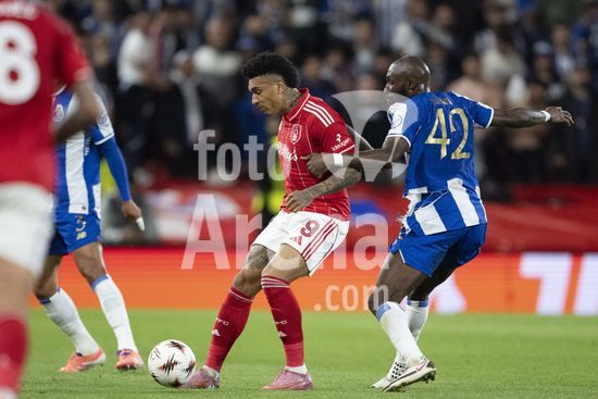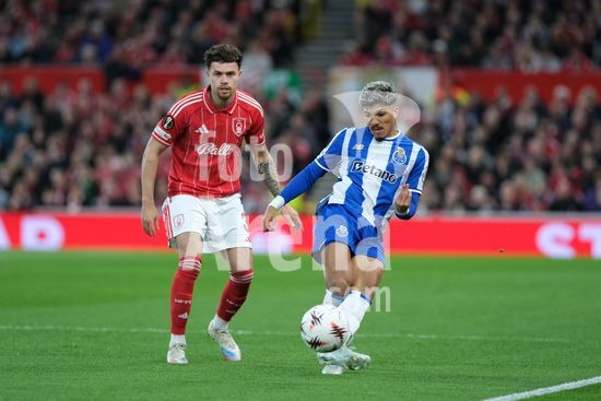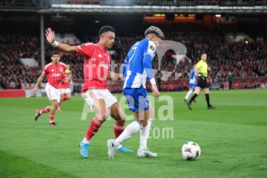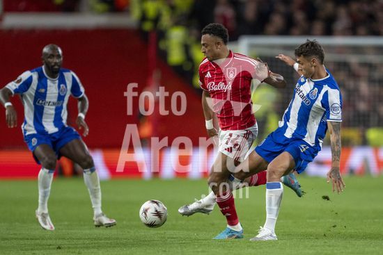 2926351 NOTTINGHAM, INGLATERRA - 16 DE ABRIL: Dan Ndoye, do Nottingham Forest, e William Gomes, do FC Porto, em acao durante a partida de futebol das quartas de final da Liga Europa da UEFA entre Nottingham Forest e FC Porto, no City Ground, em 16 de abril de 2026, em Nottingham, Inglaterra. (Paul Bonser / Sports Press Photo / SPP)