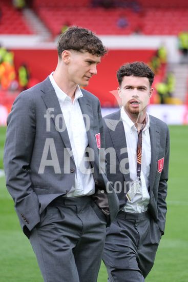 2926246 NOTTINGHAM, INGLATERRA - 16 DE ABRIL: Ryan Yates e Neco Williams, do Nottingham Forest, antes do pontape inicial da partida de futebol das quartas de final da Liga Europa da UEFA entre Nottingham Forest e FC Porto, no City Ground, em 16 de abril de 2026, em Nottingham, Inglaterra. (Paul Bonser / Sports Press Photo / SPP)