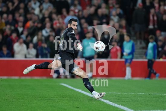 2926371 NOTTINGHAM, INGLATERRA - 16 DE ABRIL: Stefan Ortega, do Nottingham Forest, com a bola durante a partida de futebol das quartas de final da Liga Europa da UEFA entre Nottingham Forest e FC Porto, no City Ground, em 16 de abril de 2026, em Nottingham, Inglaterra. (Paul Bonser / Sports Press Photo / SPP)