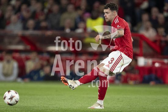 2926404 NOTTINGHAM, INGLATERRA - 16 DE ABRIL: Neco Williams, do Nottingham Forest, passa a bola durante uma partida da Liga Europa da UEFA entre Nottingham Forest e Porto, no City Ground, em 16 de abril de 2026, em Nottingham, Inglaterra. (Pedro Loureiro/SPP)