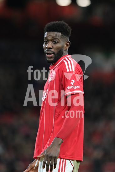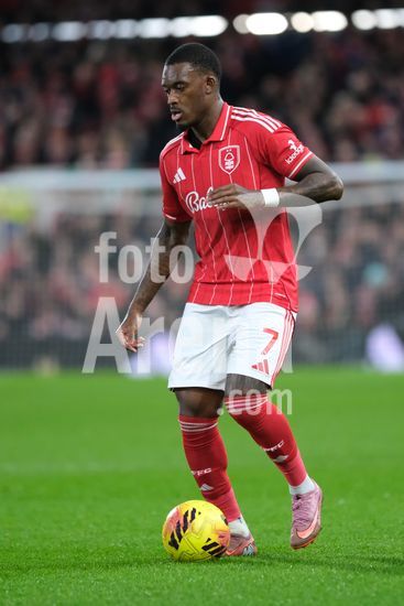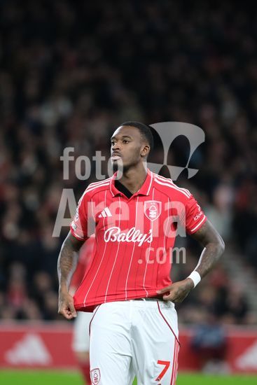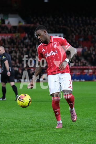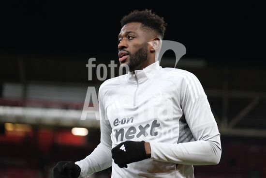 2882217 Dan Ndoye, do Nottingham Forest, durante o aquecimento pre-jogo na partida da Premier League entre Nottingham Forest e Wolverhampton Wanderers, no City Ground, em Nottingham. (Paul Bonser/Sports Press Photo / SPP)